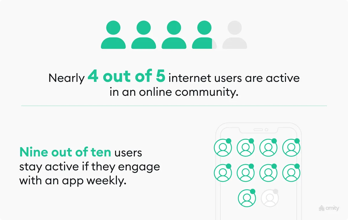 - Boosts user retention: When a community fosters a sense of belonging, users start to use your app not just for its utility but for the connection they feel towards it and its members.