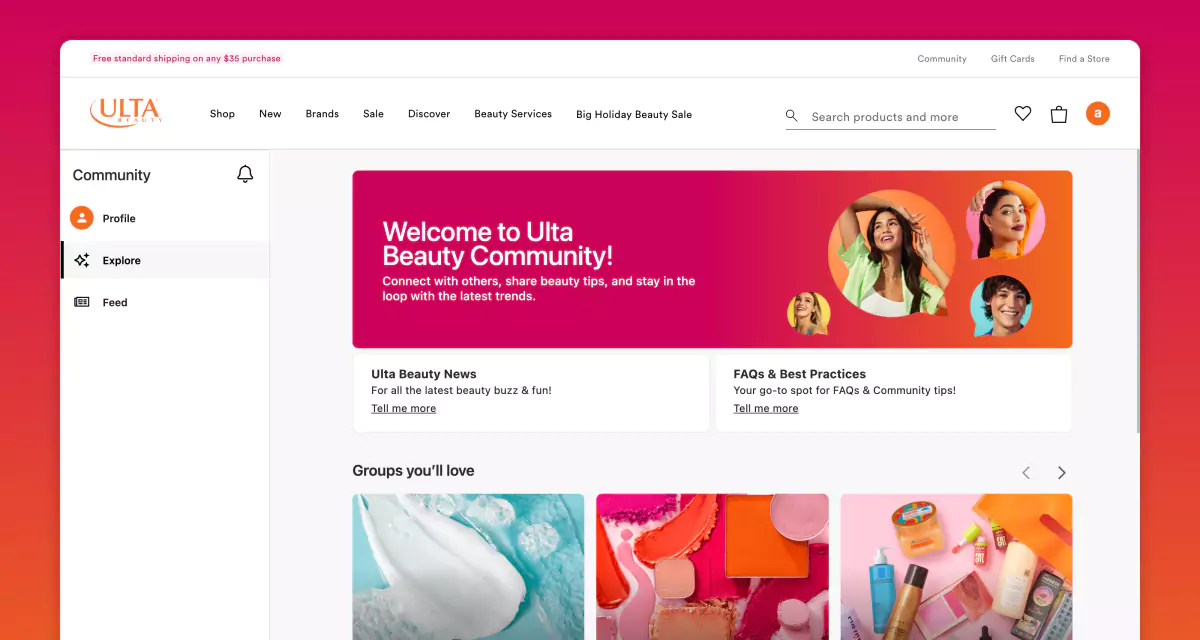 - Integrated Social Layer: social.plus offered the flexibility to seamlessly embed a social community directly into Ulta’s platform, ensuring users stayed engaged without leaving the ecosystem.